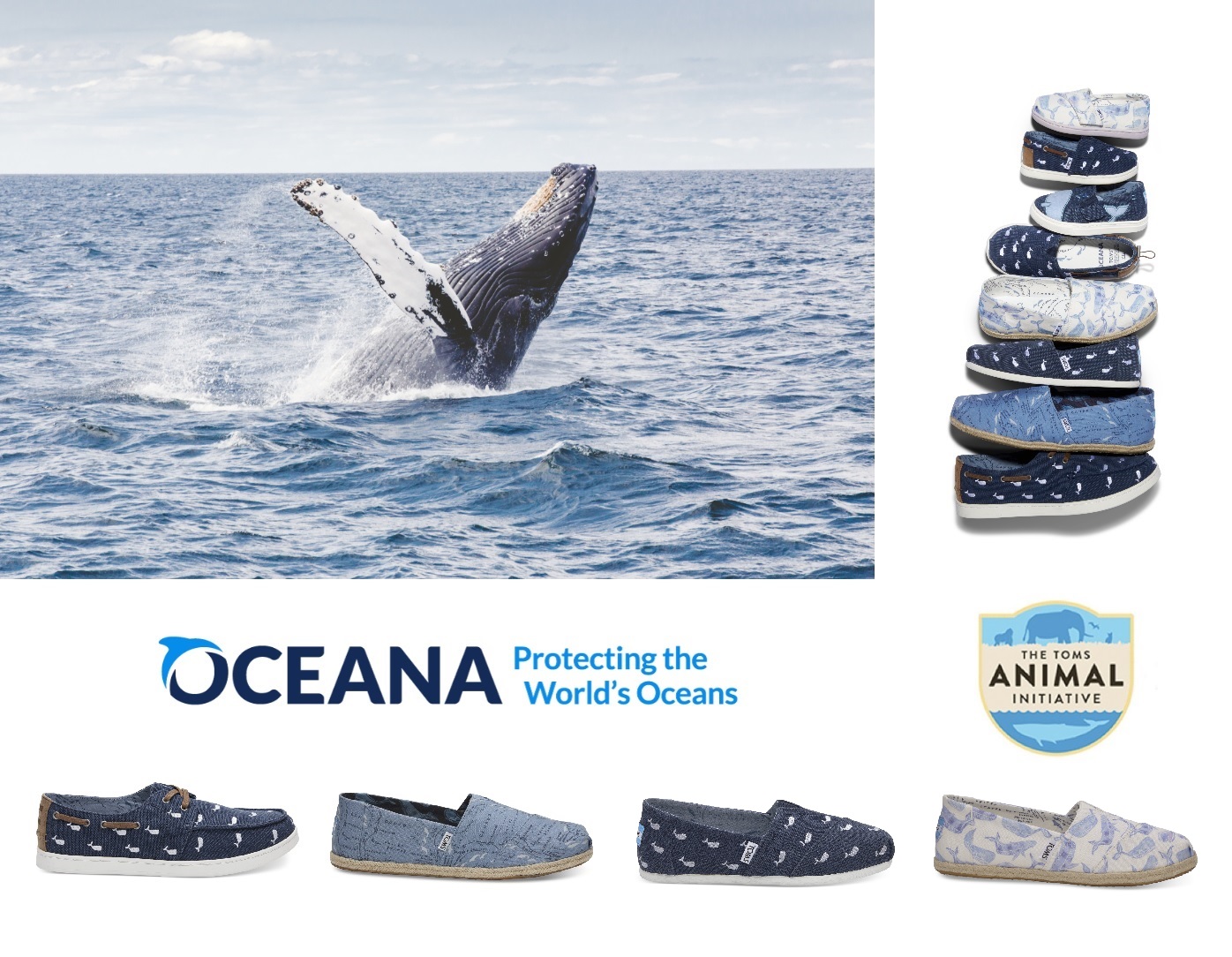 „Na podporu boje proti nadměrnému rybolovu vytvořila módní filantropická značka TOMS ve spolupráci s mezinárodní organizací Oceana kolekci bot, prostřednictvím které se snaží upozornit na neudržitelné a ničivé praktiky, které představují hrozbu pro populaci velryb na celém světě. Nejen že nadměrný rybolov může zapříčinit nedostatek jejich přirozené potravy, nebezpečím jsou také míle dlouhé sítě, které se mohou zaseknout do žáber a vedle velryb tak umírá i mnoho dalších, ekologicky důležitých ryb.“